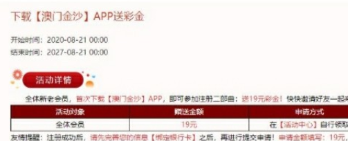 活动详情:下载APP送19注册送29元彩金/满290元提款
